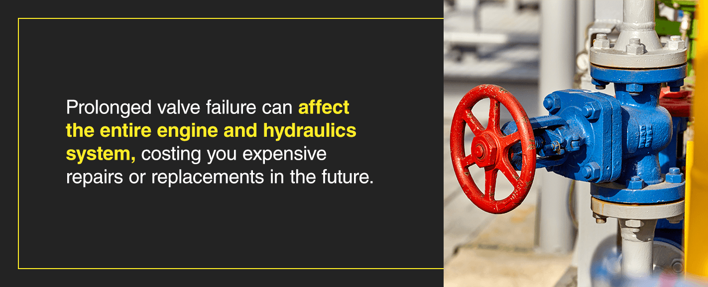 Once you make a short-term fix, it’s crucial to start on repairs or replacements right away. Prolonged valve failure can affect the entire engine and hydraulics system, costing you expensive repairs or replacements in the future.